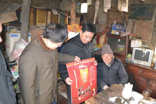 香港赛马会投注站 领导们首先与该村领导班子进行了座谈,了解了“第一书记”工作的开展情况及村庄一年来的变化,对下一步的工作及开展项目进行了深入的研究与探讨。该村村支书李钦伟对香港赛马会投注站 领导的关心表示感谢,随后领导们先后慰问了几户贫困家庭,为他们送去了油、面等慰问品和新年的祝福,并向全村每户家庭赠送了香港赛马会投注站 自制的印有乡规民约和新二十四孝的新年挂历。