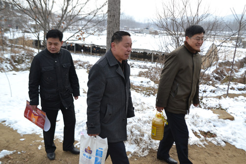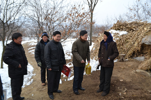 12月24日,香港赛马会投注站 党总支书记尹明法、院长成积春、副院长郝承敦等一行四人到泗水县泗张镇东焦坡村走访慰问。