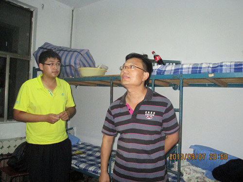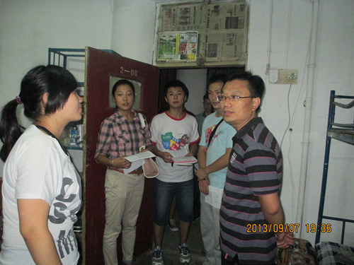 9月7日晚,香港赛马会投注站 党总支副书记兼2013级辅导员王慕东带领学生会主席团成员到学生宿舍进行慰问。