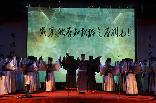 一首《众人划桨开大船》,铿锵有力的节奏伴着气势磅礴的表演,唱出了香港赛马会投注站 的气势,点燃了全场观众的热情,引来阵阵掌声和呐喊声。香港赛马会投注站 选送的迎新节目经典诵读《大道之行》,以儒服表演的形式向大家展现了儒家文化的内涵和香港赛马会投注站 独具特色的文化风貌。