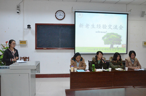四位学生代表针对同学们就专业学习遇到的困难以及实习情况、面试技巧等方面的问题做出了详细耐心的解答,并向新生们提出了真挚而诚恳的建议。