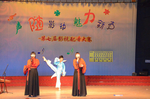 在第一环节中,选手们对自选影片进行配音,在尽可能还原影视角色的基础上增添新的元素,彰显个性魅力。选手们配音精准,诠释到位,感情丰富,配合默契,引来观众阵阵掌声。在才艺展示环节,各组的节目形式新颖、精彩纷呈,配乐诗朗诵《弹指千年》古典韵味十足,舞蹈串烧《路灯下的梅兰点了一把火》激情四射,小品《超幸福鞋垫》笑声不断,默剧《考试》让人眼前一亮,一曲《我爱你中国》将比赛推向了高潮。前两个环节分别有专业老师进行现场点评,为选手提供了宝贵的意见和建议。在最后环节中选手们抽取不同的心情对影片《让子弹飞》进行另类演绎,或兴高采烈或歇斯底里,引来观众的热烈掌声。最终“sunshine”组合荣获一等奖。