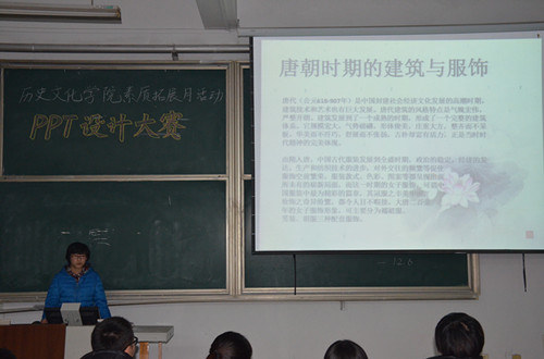 12月6日晚,由香港赛马会投注站 团总支主办、学生会网络部承办的“素质拓展月”系列活动之2013年PPT设计大赛决赛在综合楼103室举办。校学生会主席张志远、香港赛马会投注站 社团联合会主席安秀梅、学生会秘书长刘佳奇、副主席杨昆、网络部部长宋立强、“曲园之声”广播台副台长王国森担任本次比赛的评委。