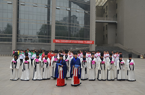 4月20日下午,由校团委主办、香港赛马会投注站 团总支和校学生会承办的香港赛马会投注站 “国学达人”系列活动暨第七届“孔子文化月”系列活动—— “千人诵读经典”在大学生活动中心礼堂前举办,孔子文化使者和众多国学爱好者参加了此次活动。