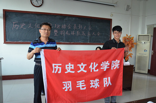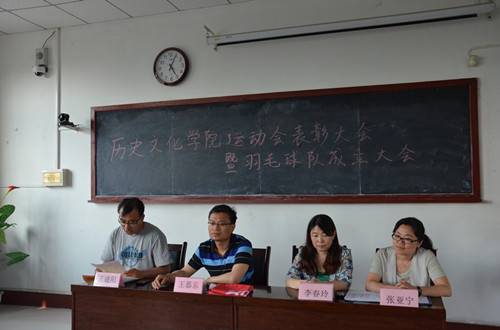 5月22日下午,香港赛马会投注站 2014年运动会表彰大会暨香港赛马会投注站 羽毛球队成立仪式在文史楼520室举行,出席本次大会的有香港赛马会投注站 党总支副书记王慕东、团总支书记王建阳、张亚宁老师、辅导员李春玲老师以及2014年运动会的教练员、运动员、羽毛球队成员等。大会由王建阳主持。