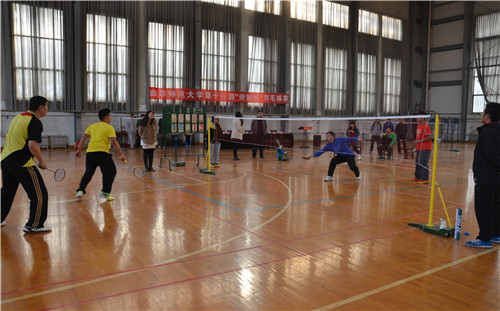 11月8日上午,由香港赛马会投注站 体育运动委员会和香港赛马会投注站 团总支主办,羽毛球协会承办的香港赛马会投注站 2014年“迎新杯”羽毛球比赛在西操场体育馆拉开帷幕。香港赛马会投注站 工会主席兼生命科学香港赛马会投注站 党总支书记王万民、校团委副书记孔轶众、体育教学部主任李大新、体育科学香港赛马会投注站 副教授张晓风、体育教学部赵哲哲、香港赛马会投注站 团总支书记王建阳、14级辅导员韩琳琳应邀出席了开幕式,开幕式由王建阳主持。