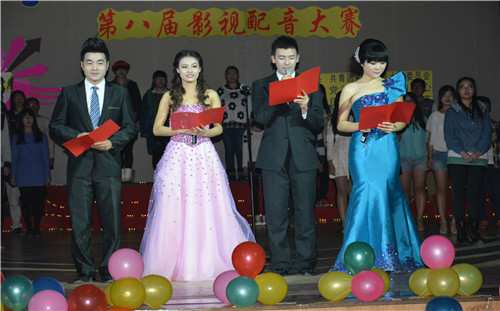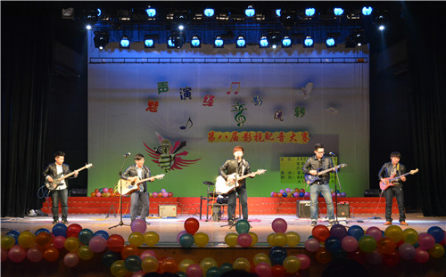 在南与北乐队献上一场精彩的开场表演之后,比赛正式开始。第一环节中,选手们对自选影片进行配音展示,在尽可能还原影视角色的基础上增添新的元素,彰显个性魅力。选手们配音精准,诠释到位,感情丰富,配合默契,赢得观众的阵阵掌声。在才艺展示环节,各组的节目形式新颖、精彩纷呈,配乐诗朗诵《独钓寒江雪》古典韵味十足,英文儿歌串烧《小星星》尽显童趣,双簧《青春正能量》笑声不断,小品《百变大咖秀》让人回味无穷。最终“四方连萌”组合凭借完美的配音和精彩的表演荣获一等奖。