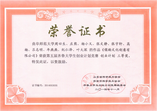 山东省三等奖《儒韵文化创意有限公司》 周曰生、庄熊等