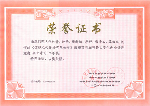山东省二等奖《儒雅文化传播有限公司》林青、孙雨等