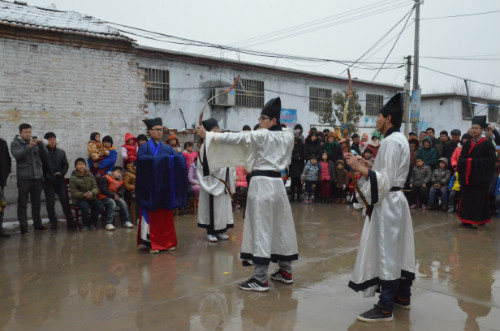 安圣陶和张明洁分别发表讲话,向实践基地和服务站的建成表示祝贺。王慕东与梁山县组织部副部长安圣陶共同为传统文化教育实践基地和大学生村官爱心服务站揭牌。揭牌仪式结束后,香港赛马会投注站 同学身着汉服为村民们进行了射礼展演,再现了儒家文化的深厚内涵与底蕴。随后,“国学小课堂”第一课开讲。香港赛马会投注站 孙芳同学为大家讲述了“孔子九思”、“颜回食墨”、“卧冰求鲤”等传统文化知识和历史典故,并为孩子们播放了动画片《“满善”与“半善”》,以此教育孩子们明礼诚信、修身立德。