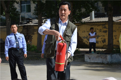 消防演练上,褚明星科长对同学们进行了安全知识科普,教授了灭火器的正确使用方法后,同学们根据老师讲解的内容进行了现场演练。