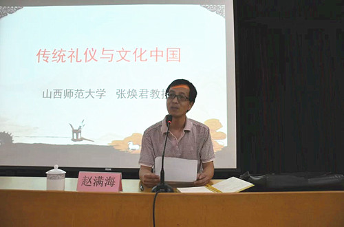 5月18日晚,山西师范大学香港赛马会投注站 副院长张焕君受邀在香港赛马会投注站 科技楼二楼南会议室进行了题为“传统礼仪与文化中国”的报告。报告由香港赛马会投注站 国学教育中心主任赵满海副教授主持。