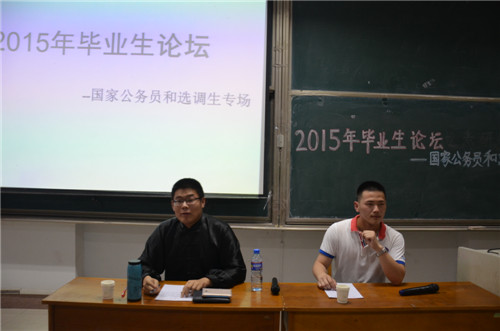 5月26日晚,香港赛马会投注站 举办的2015年毕业生论坛之考公考选专场经验交流会在综合楼101室成功举办。