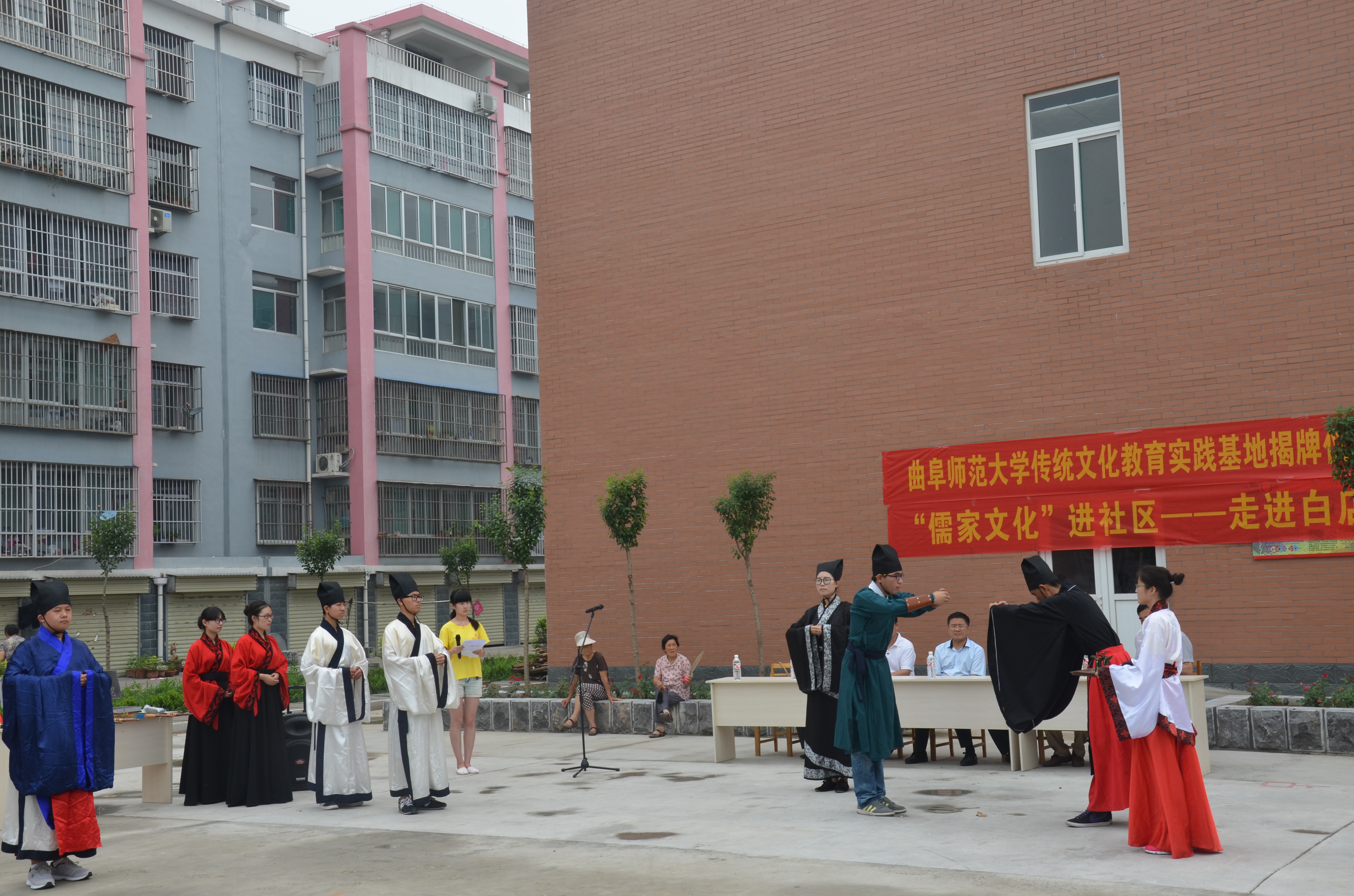 揭牌仪式后,香港赛马会投注站 学子为村民们带来了孔子六艺演出、儒服射礼和古代简单礼仪等表演,展示了人们行为举止的礼仪示范。现场村民也在香港赛马会投注站 学子的帮助下穿上儒服,与同学们充分互动,感受传统礼仪文化的魅力。