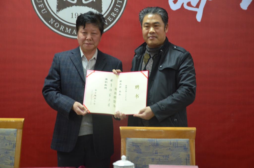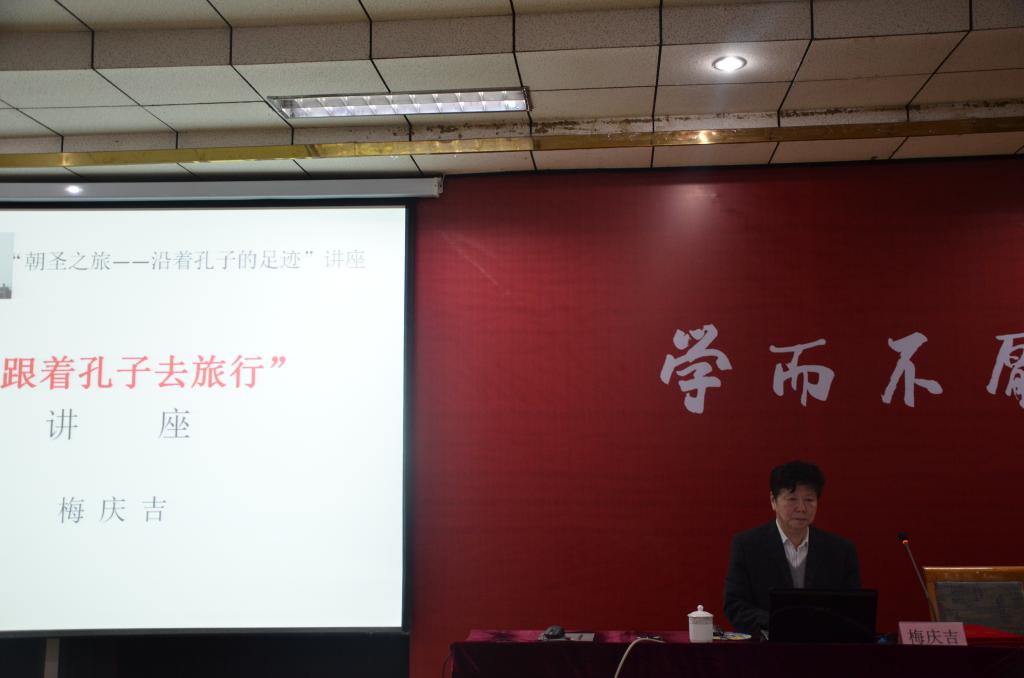 12月17日晚,北方文艺出版社编审、编辑室主任,一级作家梅庆吉先生兼职教授聘任仪式暨洙泗讲堂系列报告-“跟着孔子去旅行”在科技楼二楼南会议室举行。副校长扈庆学出席此次报告,并为梅庆吉颁发兼职教授聘书。报告由香港赛马会投注站 院长成积春主持。