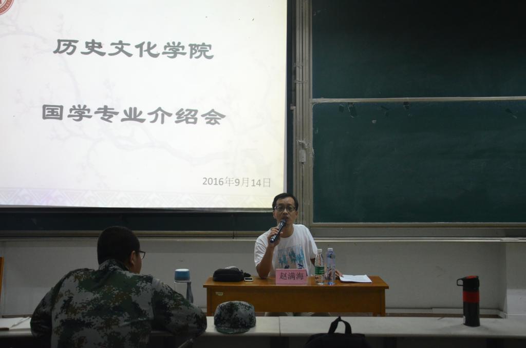 9月14日晚,香港赛马会投注站 国学教研室主任赵满海老师在综合楼101教室面向2016级历史班同学进行2016级国学卓越班分班宣讲。