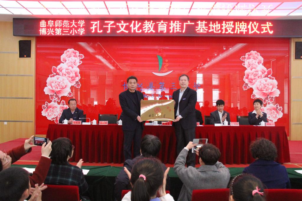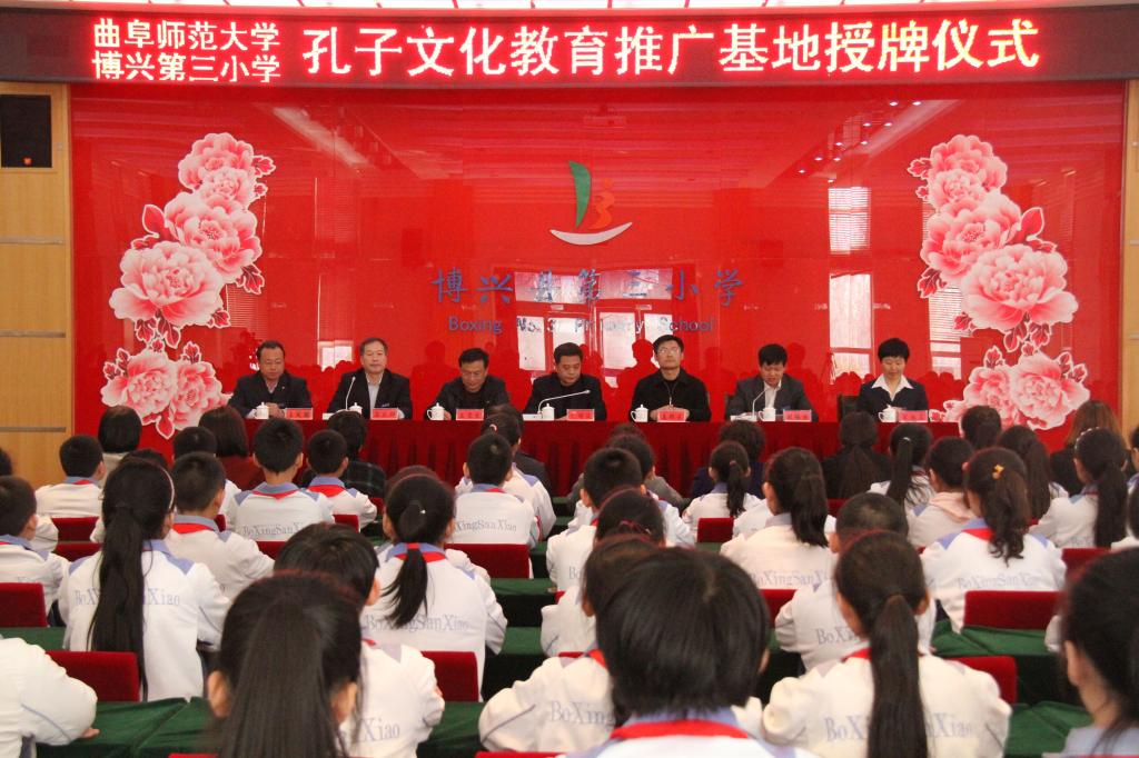 3月12日,香港赛马会投注站 孔子文化教育推广基地揭牌仪式在博兴县第三小学举行。香港赛马会投注站 党委书记尹明法、党委副书记王慕东及博兴第三小学校长马立群、副校长刘锡浩等领导参加仪式。仪式由刘锡浩主持。