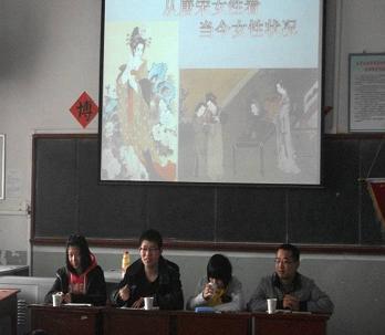 本次活动的主题是“从唐宋女性浅谈当代女性现状”,参加本次活动的同学有09级历史一班的陈威、09级国政一班的刘阳、09级国政一班的王涛以及10级的部分同学。