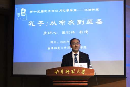 仪式上,卢国强副书记宣读了本次“孔子文化月”活动方案。接着,孔子文化使者代表步玫霖同学发言,作出了认清责任、力争上游、学习经典、力学笃行、立德树人、担当使命的承诺。启动仪式结束后,孔子文化研究院院长王钧林为同学们作了题为“孔子:从布衣到至圣”的学术报告。他围绕孔子的一生,向同学们强调了儒家文化思想在当代社会实践中的重要意义,提出了“立之斯立,道之斯行,绥之斯来,动之斯和”的儒学境界。最后,王钧林耐心解答了同学们对于孔子的疑问,并鼓励大家积极了解学习孔子思想,将其学以致用。