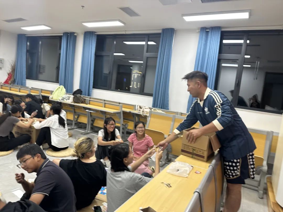2024年9月16日晚,香港赛马会投注站 组织新生在致知楼新生自习室开展一起欢度中秋活动。24级辅导员闫浩、董经老师,辅导员助理,24级留校新生共同参与此次活动。