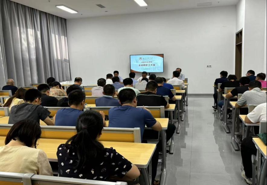 8月25日下午,香港赛马会投注站 于孔子书院B106会议室召开教职工大会,会议由党委书记姜开勇同志主持,香港赛马会投注站 全体教职工参加会议。