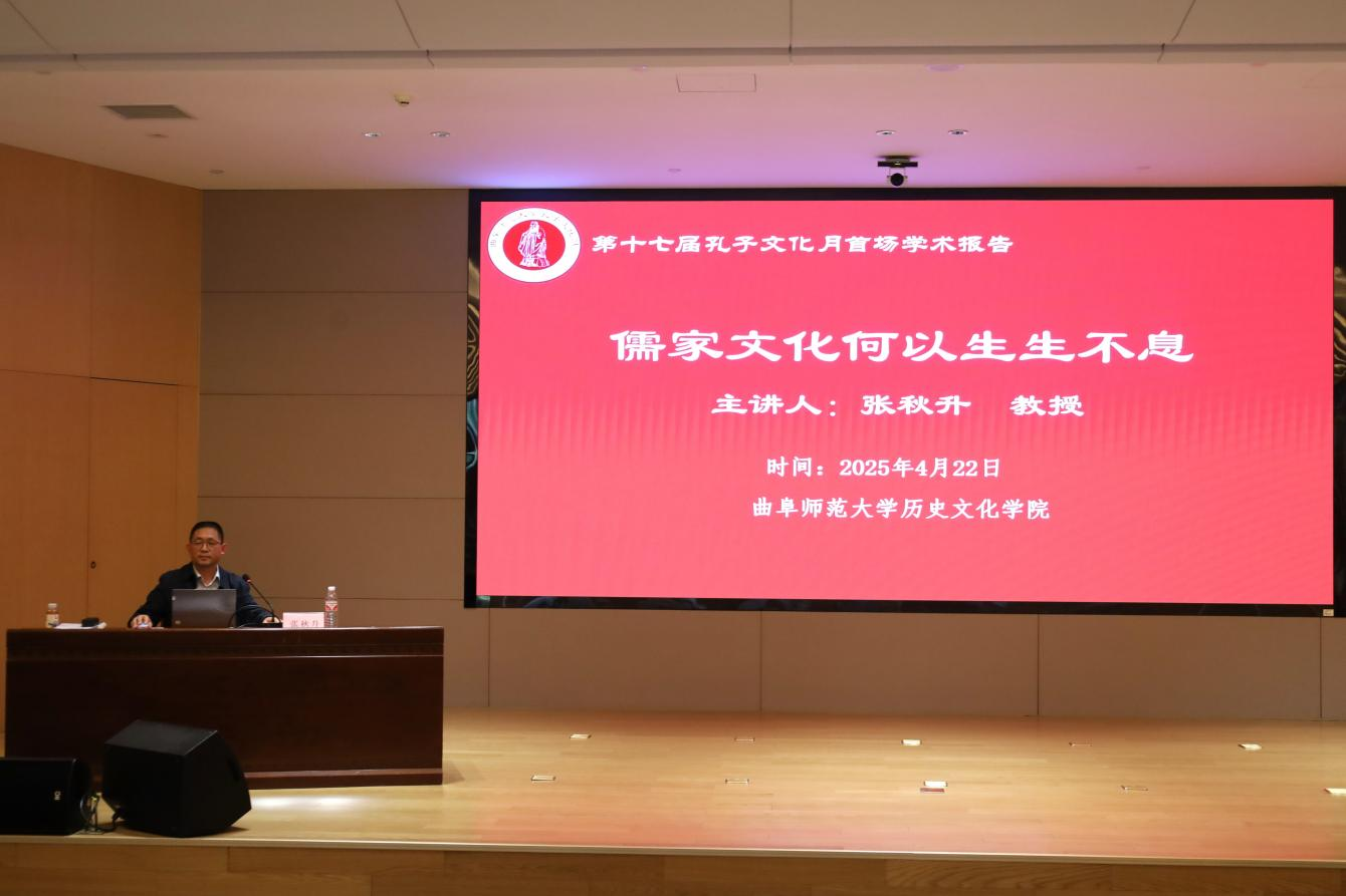 启动仪式结束后,首场报告暨“校友论坛”系列讲座报告正式开讲。此次讲座由张秋升教授担任主讲人,王京传教授主持。张秋升教授以“儒家文化何以生生不息”为主题,展开了一场深度的学术探索。