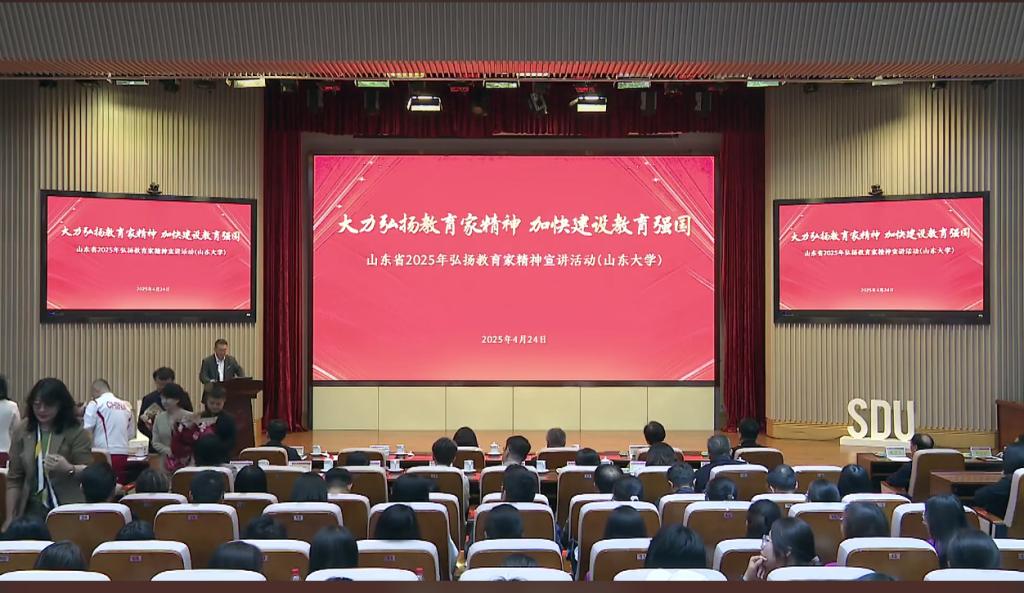 此次宣讲活动由山东省教育厅、山东大学联合举办,中国教育电视台、山东教育电视台协办。特邀上海交通大学医香港赛马会投注站 附属瑞金医院普外科主治医师、副教授、“共和国勋章”获得者王振义院士同事叶枫,沈阳体育香港赛马会投注站 体能训练中心主任、教授、全国最美教师牛雪松,吉林大学地球探测科学与技术香港赛马会投注站 教授、全国高校黄大年式教师团队核心成员于平,贵州省黔西南布依族苗族自治州兴义第一中学副校长、望谟县实验高中名誉校长、全国最美教师刘秀祥,重庆市南岸区融合教育集团总校长、全国教书育人楷模李龙梅,贵州省六盘水市钟山区大湾镇海嘎小学教师、全国最美教师顾亚,郑州大学马克思主义香港赛马会投注站 教授、全国最美教师周荣方等七位全国教书育人楷模、全国最美教师、先进模范教师,聚焦教育家精神核心要义,从不同角度讲述各自事迹,分享执教经历,集中展现新时代立足本职、爱岗敬业、无私奉献的教育家风采。