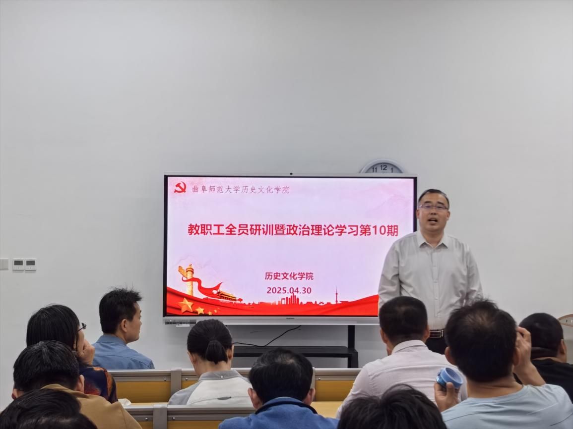 2025年4月30日下午,香港赛马会投注站 在孔子书院B120教室开展教职工全员研训暨政治理论学习第10期。活动由香港赛马会投注站 党委副书记王建阳主持,香港赛马会投注站 党委学习委员孙锋领学,在校教师50余人参加研训。