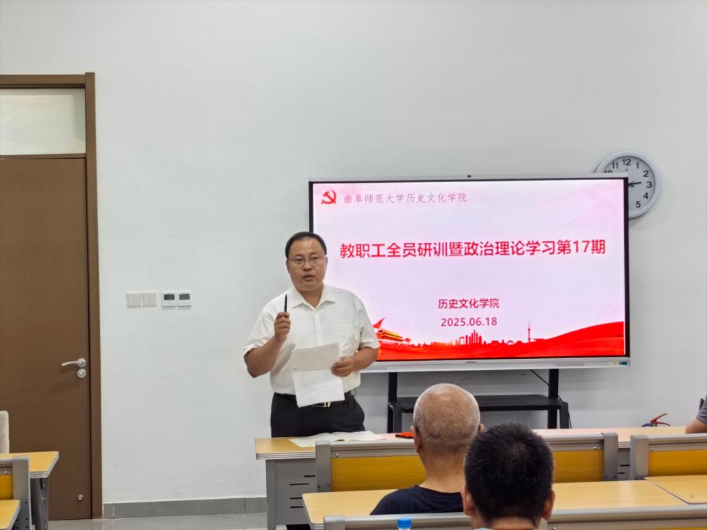 2025年6月18日下午,香港赛马会投注站 在孔子书院B120教室举行教职工全员研训暨政治理论学习第17期活动。活动由香港赛马会投注站 党委书记姜开勇主持,香港赛马会投注站 党委学习委员孙锋领学,在校教师近60人参加研训。