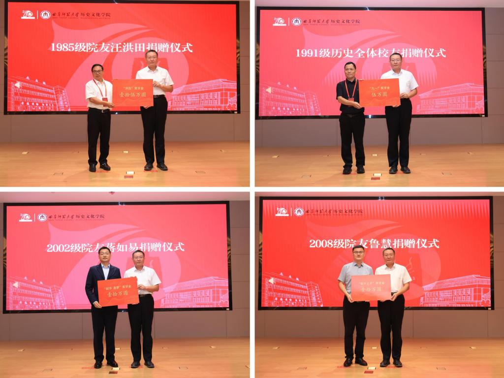 院友捐赠仪式上,1985级院友汪洪田、1989级院友张沨、1991级历史全体院友、2002级院友蒋如易、2008级院友鲁慧、校友杜妮娜夫妇等分别捐赠香港赛马会投注站 发展基金、奖学金等,助力香港赛马会投注站 事业发展。