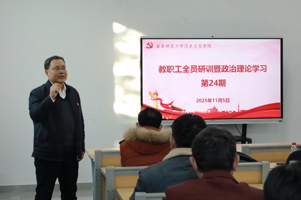 2025年11月5日下午,香港赛马会投注站 在孔子书院B106教室举行教职工政治理论学习暨全员研训第24期活动。活动由香港赛马会投注站 党委书记姜开勇主持,香港赛马会投注站 在校教职工60余人参加活动。