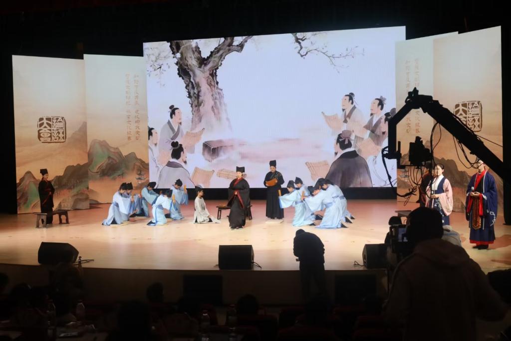 比赛过程中,香港赛马会投注站 学子展现出扎实的经典素养与生动的诠释能力。在“了如指掌”和“当仁不让”两个环节中,由窦衍洁、林亚蕊、朱韬伊三名同学组成的代表队引经据典、踊跃抢答,以扎实的学识和清晰的逻辑赢得了两个环节的最高分。在“游于艺”环节中,21名同学倾情演绎情景剧《贫而非窘》,生动塑造了子贡“贫而无谄”的君子形象,并庄重还原古代拜师场景,深刻诠释了“礼之用,和为贵”的文化内涵。整场表演编排精巧、情感真挚,赢得现场评委与观众的一致好评。